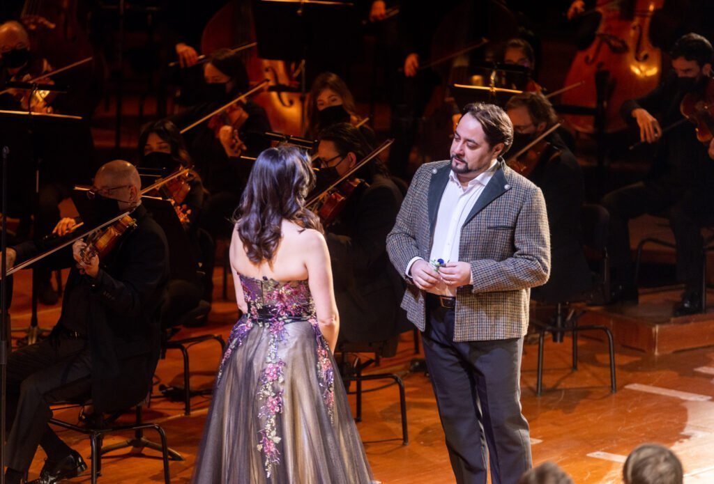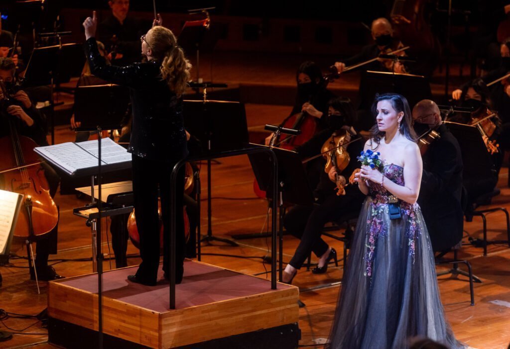 La version concert de Toulouse redonne vie à cet opéra injustement oublié. L’orchestre national du Capitole amplement déployé dans l’arène de la salle s’avère somptueux sous la baguette, pleine de fièvre et d’intensité de Speranza Scapucci. Son Puccini électrique sonne, mélodiste reconnaissable entre tous, ardent, fougueux, travaillant une pâte orchestrale chatoyante et toujours chantante. Les interludes orchestraux (le cortège funèbre d’Anna, si recueillie, la danse infernale des Villi zébrée d’éclairs) font vibrer les pupitres qu’enflamme l’énergie d’une Scapucci vif argent, alerte, tranchante, soucieuse moins d’effets que de beauté sonore. Les magnifiques chœurs du Capitole n’ont rien à envier aux meilleurs. Montagnards, cortège funèbre ou fantômes, ils distillent, malgré les masques sanitaires, leur riche harmonie avec précision et engagement.